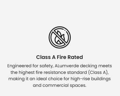 A: ALumverde products carry ASTM E84 Class A fire ratings, the best degree of flame spread and smoke development, and are extremely safe for high-risk installations. Not fully proof, but close enough for most codes.